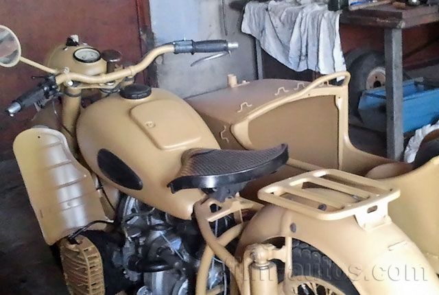 Dnepr K 750 bei film-autos.com: Suchen Sie einen Oldtimer von Dnepr aus der Zeit der 1960er Jahre zum Mieten? Das hier abgebildete Modell K 750 stammt aus dem Jahr 1960. Damit entspricht es der Oldtimerklassifizierung Post War (E). Dieses Militär-Motorrad aus Ukraine ist außen afrikabeige, innen anthrazit. Bei diesem Oldtimer sind kleinere bis mittlere Gebrauchsspuren vorhanden.