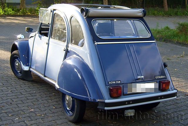 Citroen 2CV 6 Club bei film-autos.com: Sie suchen einen Oldtimer von Citroen aus der Zeit der 1980er Jahre zum Mieten? Dieses Modell 2CV 6 Club stammt aus dem Jahr 1987. Dieses Cabrio / Roadster aus Frankreich ist in der Außenfarbe hellblau / dunkelblau, der Innenraum ist blau. Bei diesem Oldtimer sind keine sichtbaren Gebrauchsspuren vorhanden.